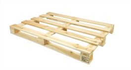 Eenmalige lichte houten pallet voorzien van een ISPM15 behandeling. De behandeling laat export buiten de EU toe. Voorzien van houten klossen, draagvermogen 500 kg.
