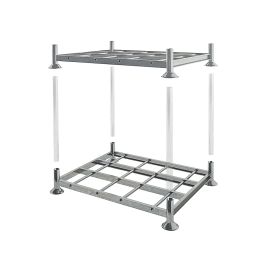 Gegalvaniseerd stapelrek met TÜV certificering, geschikt voor transport en opslag van pallets. De buitenafmetingen zijn 1545x1180x310mm en de binnenafmetingen zijn 1370x1005x310mm. Dit is een erg flexibel systeem wat past bij seizoenspieken. Het opzetten van extra opslagcapaciteit is bij behoefte hieraan snel en eenvoudig geregeld met deze stapelracks. Doordat deze mobile racks gegalvaniseerd zijn wordt roestvorming tegen gegaan, zijn ze krasbestendig en steviger. Dit stapelrek is exclusief buizen, de buizen op de hoeken van het stapelrek zijn in meerdere standaard hoogtes verkrijgbaar. Afhankelijk van de stapelhoogte varieert het draagvermogen tussen de 2000 en 1500 kilogram per mobile rack, het eigen gewicht van dit stapelrek is 33 kilogram.